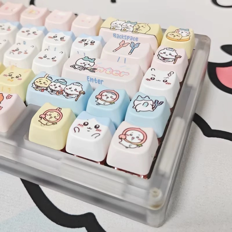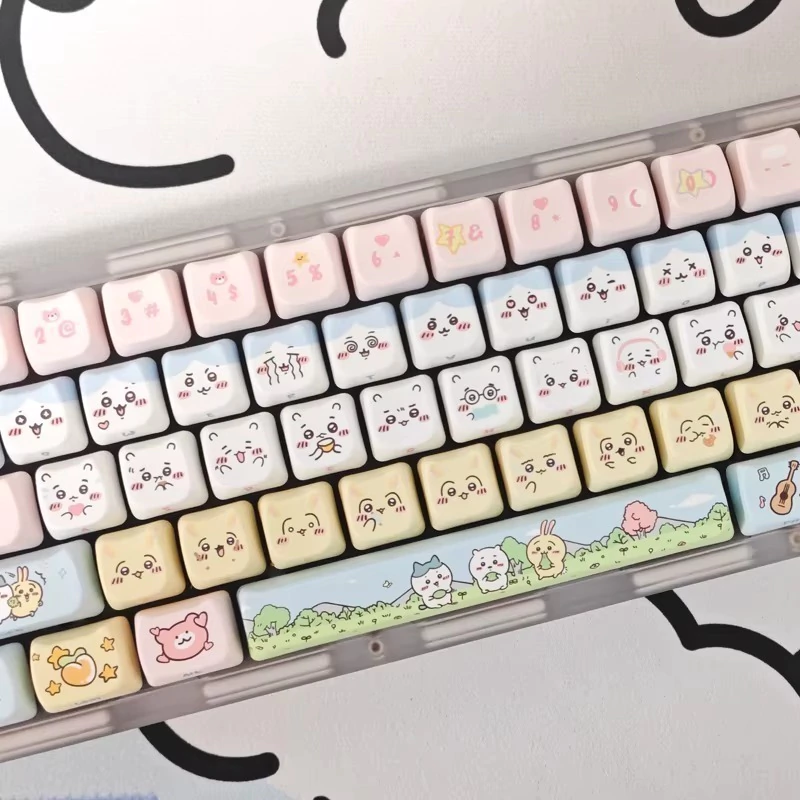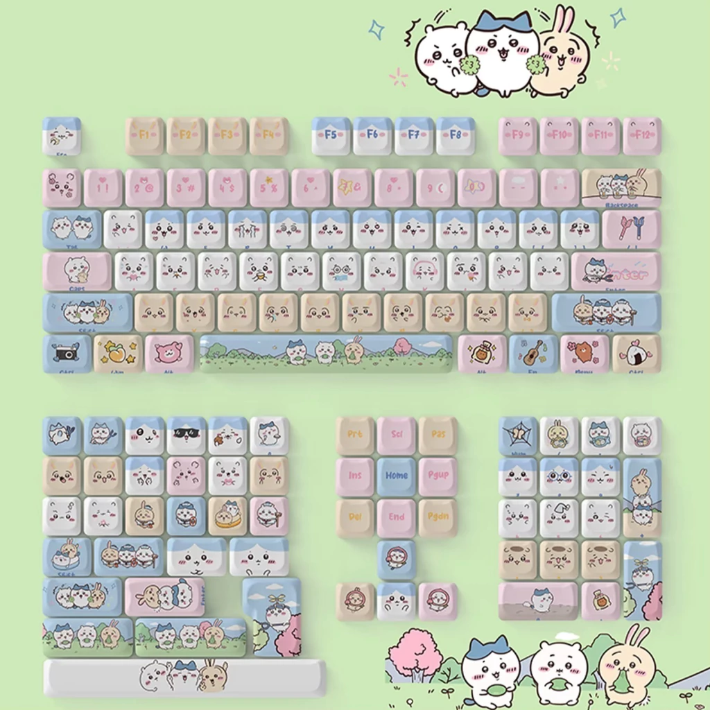 El set Chiikawa incluye 132 keycaps en perfil MOA, fabricados en PBT con impresión dye-sublimation para máxima durabilidad. Su estética inspirada en personajes Chiikawa es perfecta para quienes buscan un setup cute, colorido y de alta calidad.