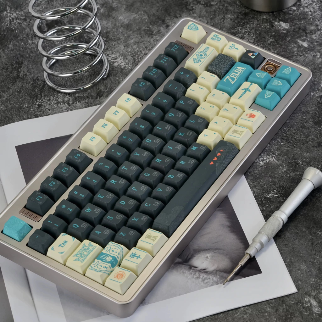 El set Zelda: Tears of the Kingdom incluye 130 keycaps en perfil Cherry, fabricados en PBT con técnica dye-sublimation para máxima durabilidad y colores vibrantes. Inspirado en el universo de Zelda, ofrece un diseño temático único ideal para fans y setups gamer personalizados.