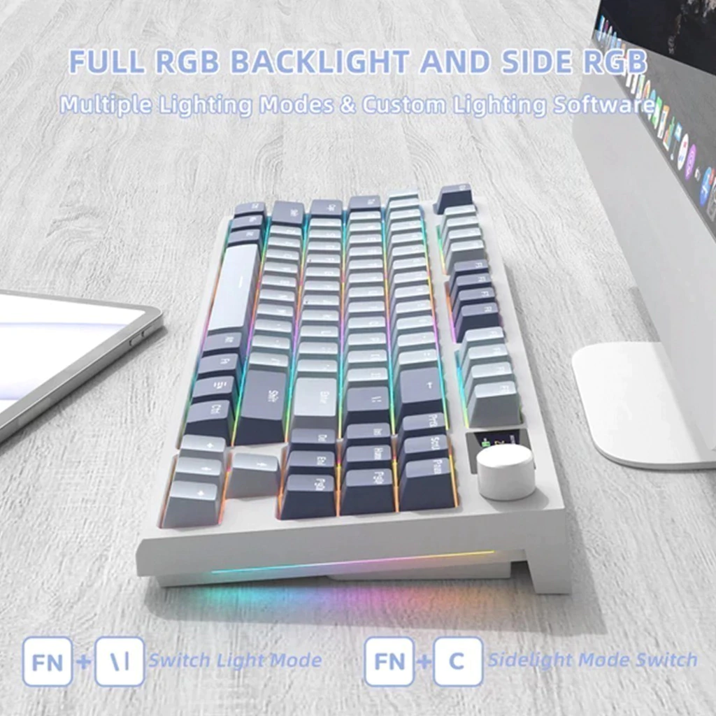 Este teclado tkl presenta el popular diseño del 75 %, que logra el equilibrio perfecto entre funcionalidad y compacidad. A diferencia del teclado del 60 %, conserva las teclas esenciales y optimiza el espacio del escritorio. Además, al estar fabricado con material PBT de alta calidad, las teclas prometen durabilidad y resisten el brillo aceitoso que puede desarrollarse con el tiempo en las teclas de menor calidad.